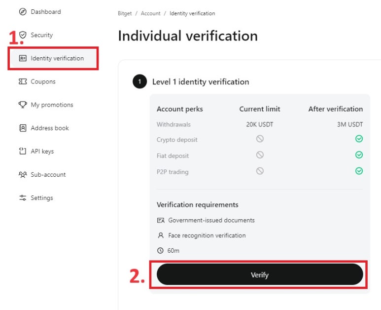 1. [Identity Verification]을 클릭해 신분 인증 페이지로 이동