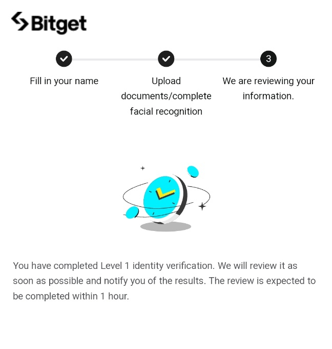 Level 1 identity verification 옆 노란색 네모가 뜨면