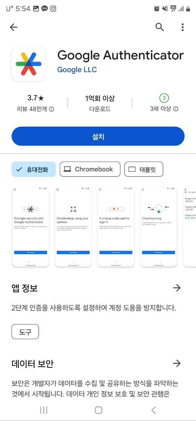 핸드폰에 구글 OTP(Google authenticator)를 다운로드합니다.
