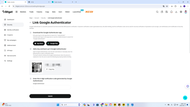 이제 비트겟 사용을 위한 사용자 인증을 해봅시다.