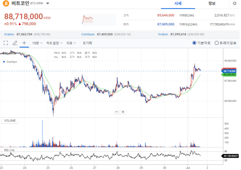 횡보장이 이어지다가 6월 30일 16:00부터 68K를 뚫으며 오랜만에 상승을 보여줬다.