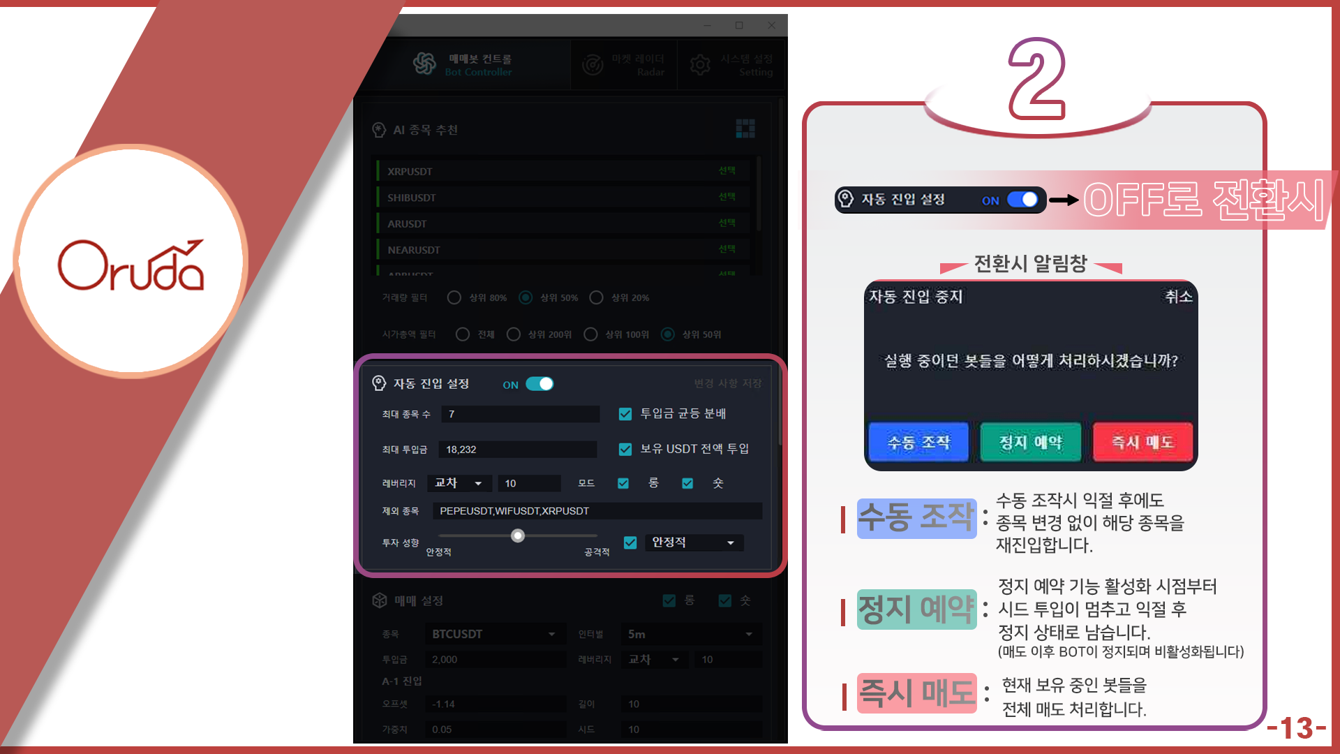 정지 예약 선택 시-> 활성화 시점부터 시드 투입 정지, 익절 후 정지 상태로 남음