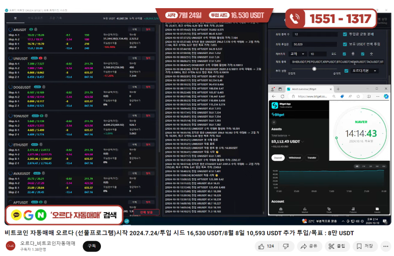 오르다 공식 유튜브와 연계하여 24시간 송출 중인 선물 프로그램의 수익현황을 기록하는 오르다 자동매매 일지입니다. 대표번호 : 1551-1317