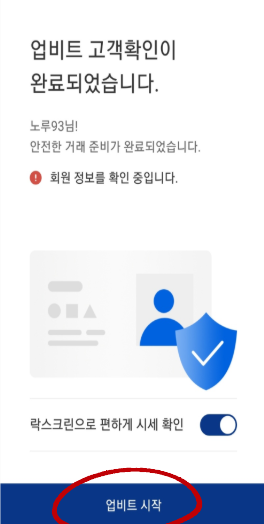 이렇게 모든 게 끝났으면, 암호화폐 거래를 위한 업비트 가입이 완료되어, 거래가 가능합니다!
