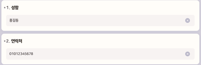 성함과 연락처를 기재하신 뒤,