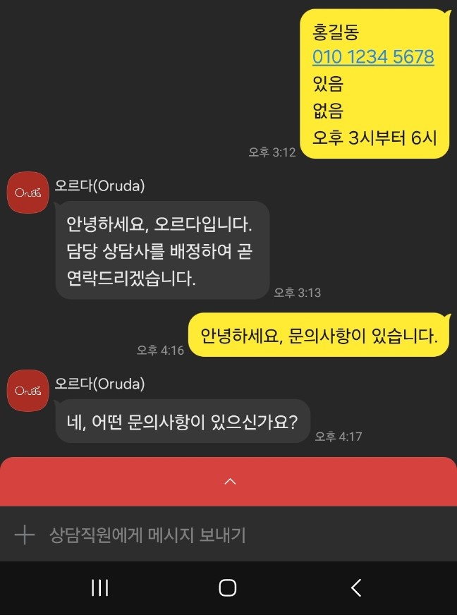 안녕하세요. 오르다를 방문해주셔서 감사합니다. 궁금하신 점 남겨주시면 빠르게 연락드리겠습니다.