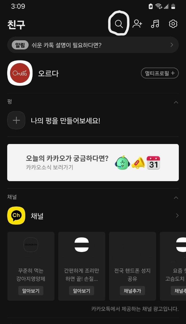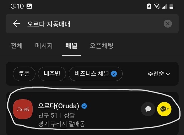 오르다 공식 카카오 채널을 클릭.