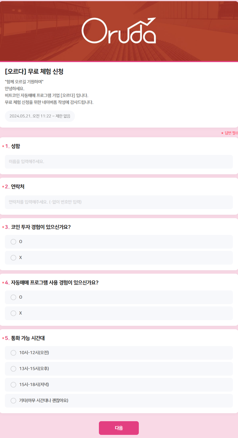 오르다 무료체험 신청[네이버폼]